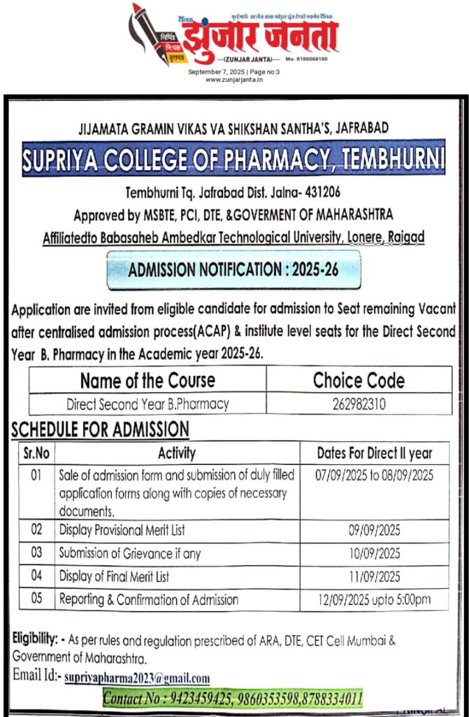 Supriya College Of Pharmacy, Tembhurni